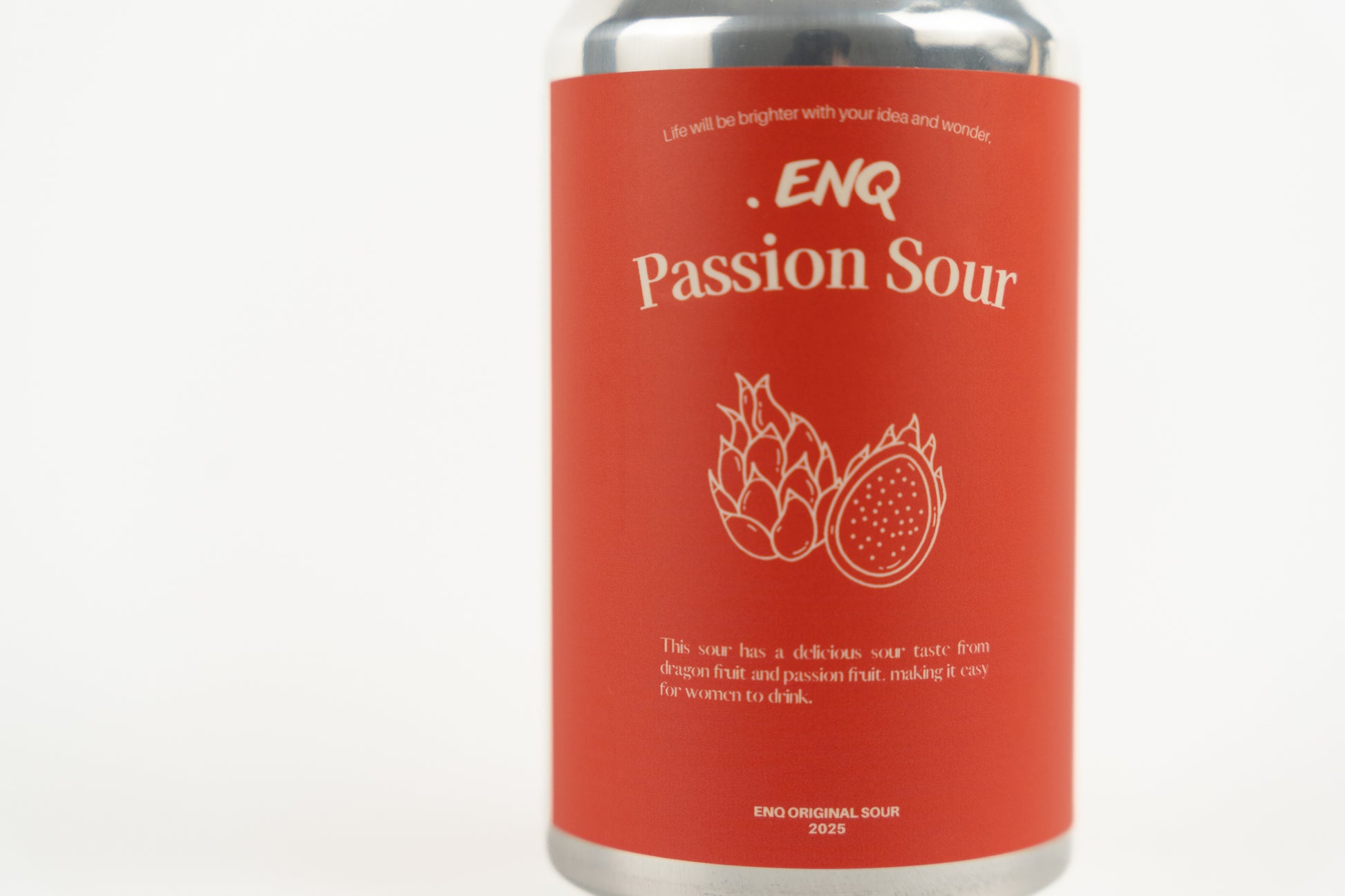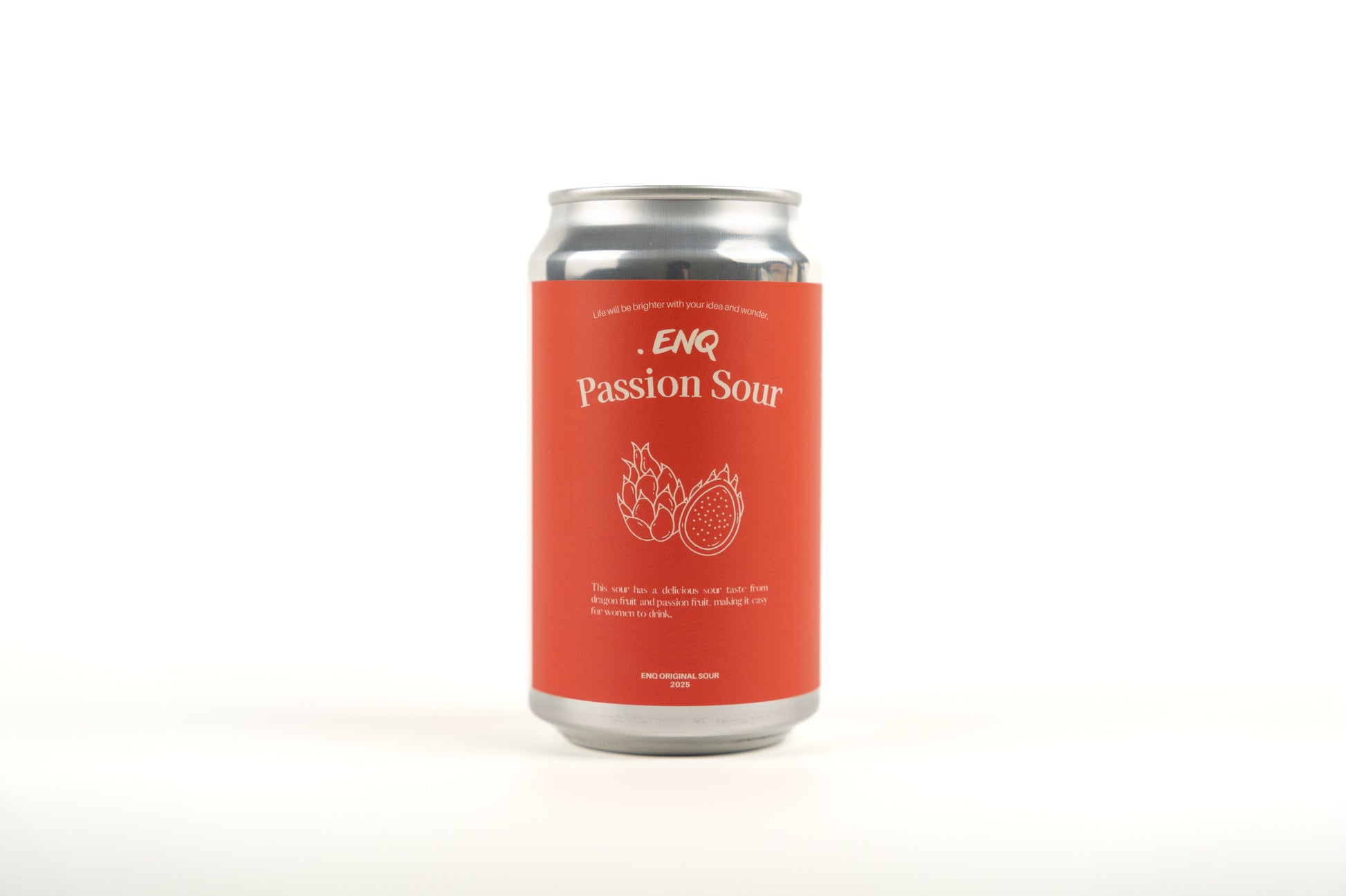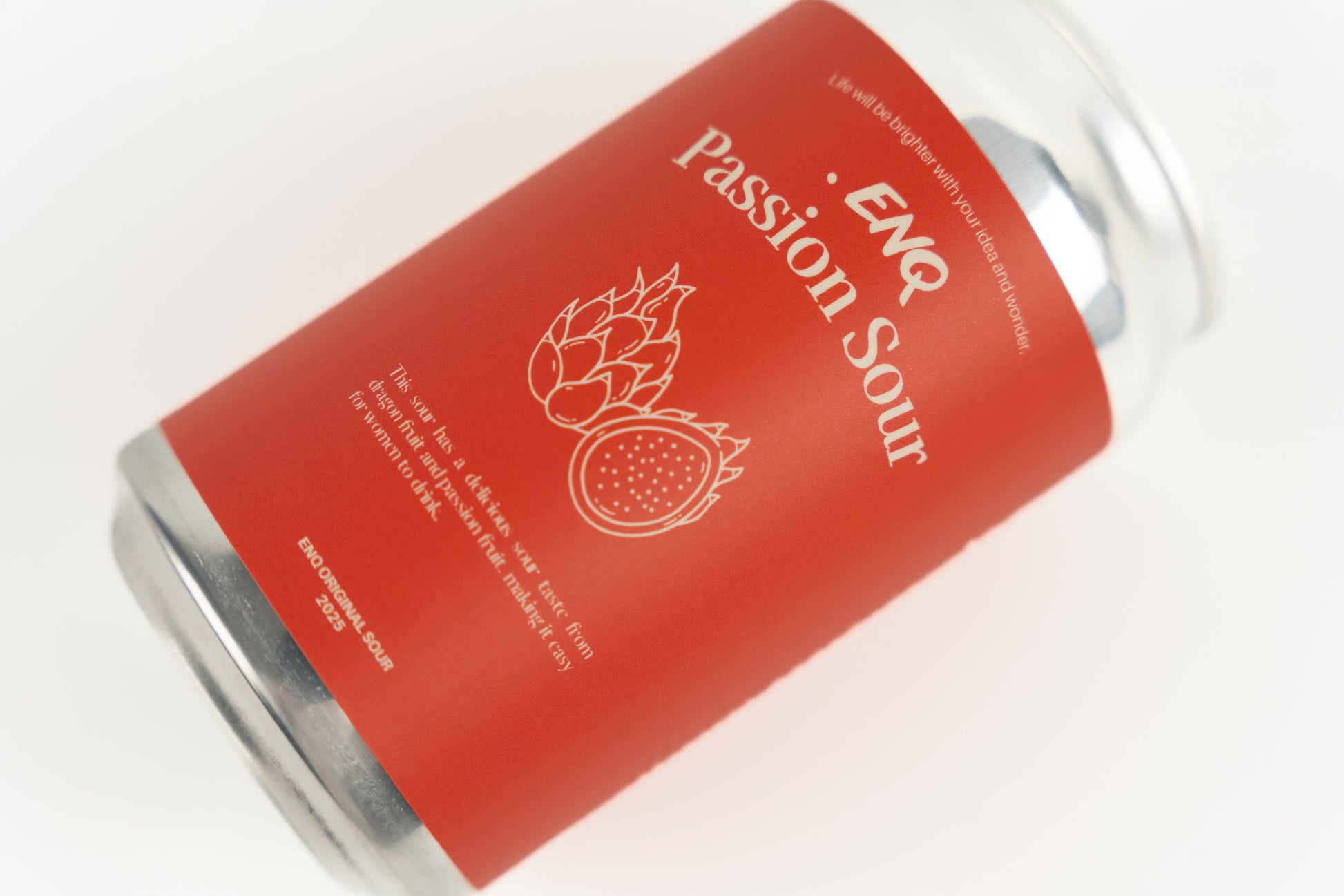 ENQオリジナル フルーツサワー。パッションフルーツの鮮烈な酸味とピンクドラゴンフルーツの優しい甘みが調和した、南国の果実感が広がる鮮やかな色合いのサワービール。酸味と軽さが特徴的でビールが苦手な方でも楽しんでいただけます。女性人気がとても高くBBQシーンなどで、スッキリしたい時にもおすすめです。